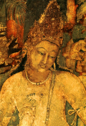 Hacia el siglo VII cuando fue realizado esta pintura en Ajanta , la doctrina Mahayana comenzaba de hecho a reconducir el Budismo a sus origenens. Tras la invasión islamica ocurrida a principios del siglo XI el budismo fue erradicado totalmente del norte del país ( de ahi la escacez de monumentos supervivientes) y en el sur se asimilo al seno del hinduismo, acabandose por considerar a Buda un avatar o rencarnación de Vishnú. Así la historia subsiguiente del arte budista se desenvuelve principalmente fuera de la India.